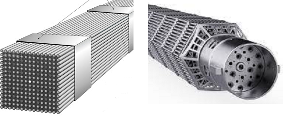Soldaki resimde PWR reaktörleri için nükleer yakıt, sağdaki resimde ise VVER reaktörleri için nükleer yakıt gösterilmektedir.